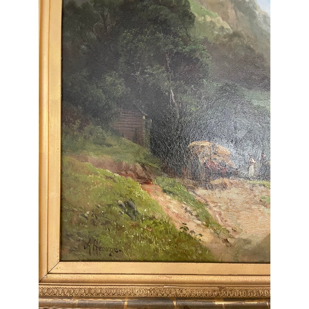 19th Century Impressionist Style Lake Geneva Switzerland Landscape Oil Painting Framed Syd Sam